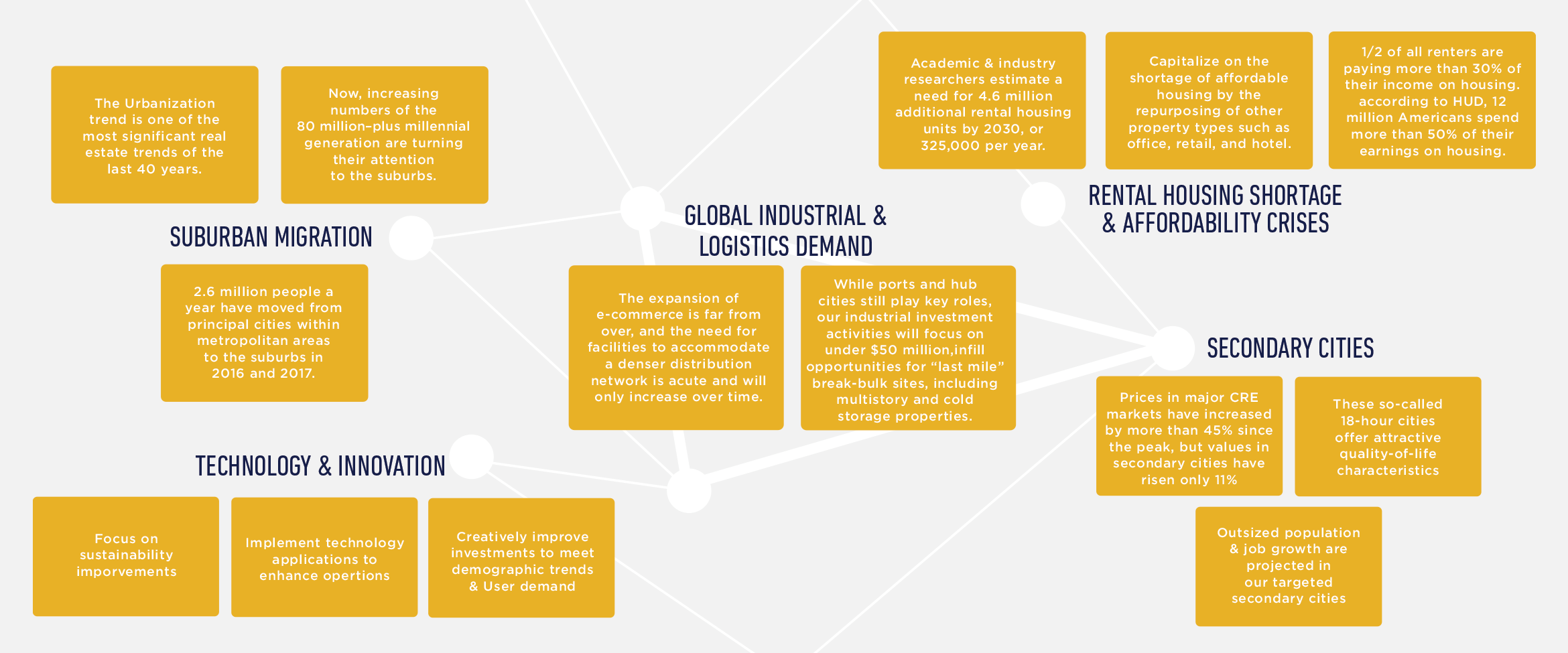 We believe the key word for real estate’s future performance is transformation—in technology and operational advances, in generational and demographic choices, in a reconfiguration of preferences by geography and markets, in multifamily and industrial assets, and in the potential for new investors in the asset class.