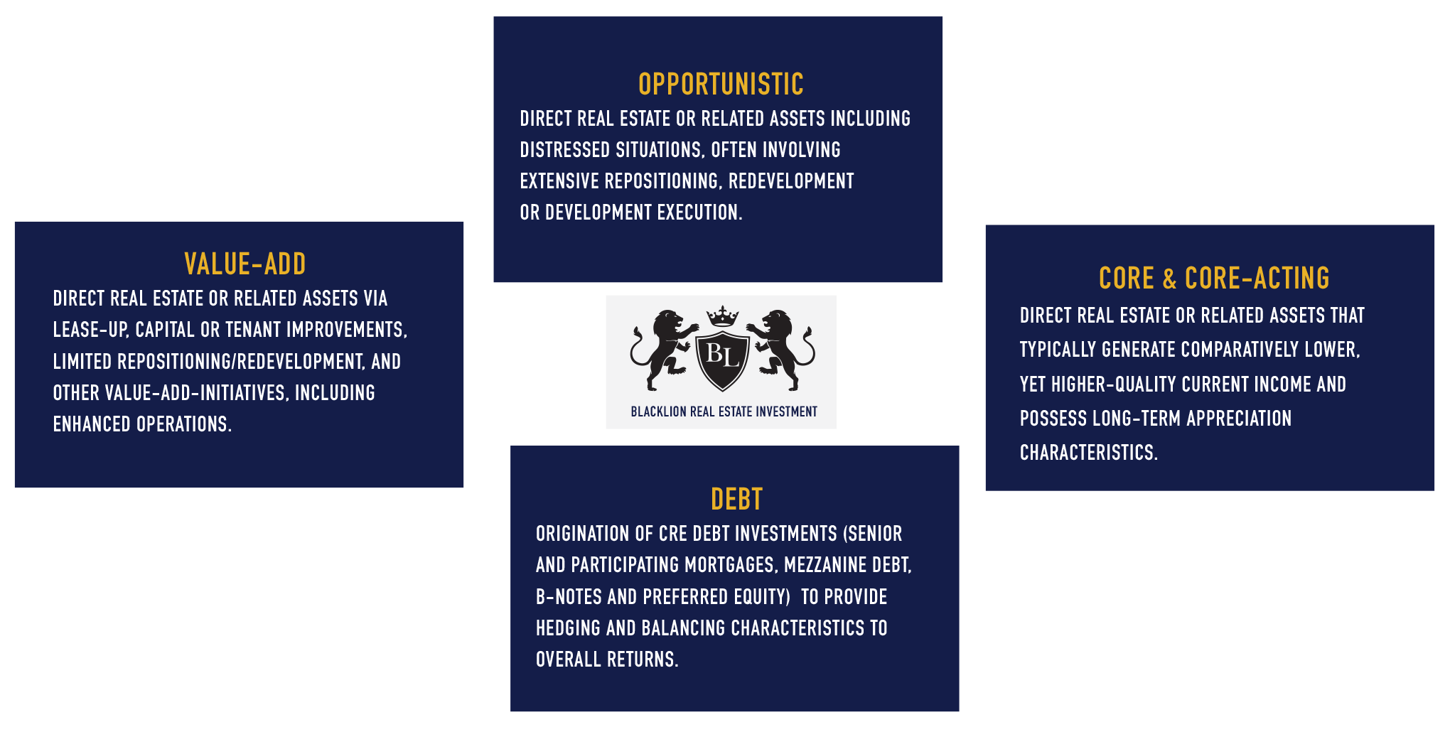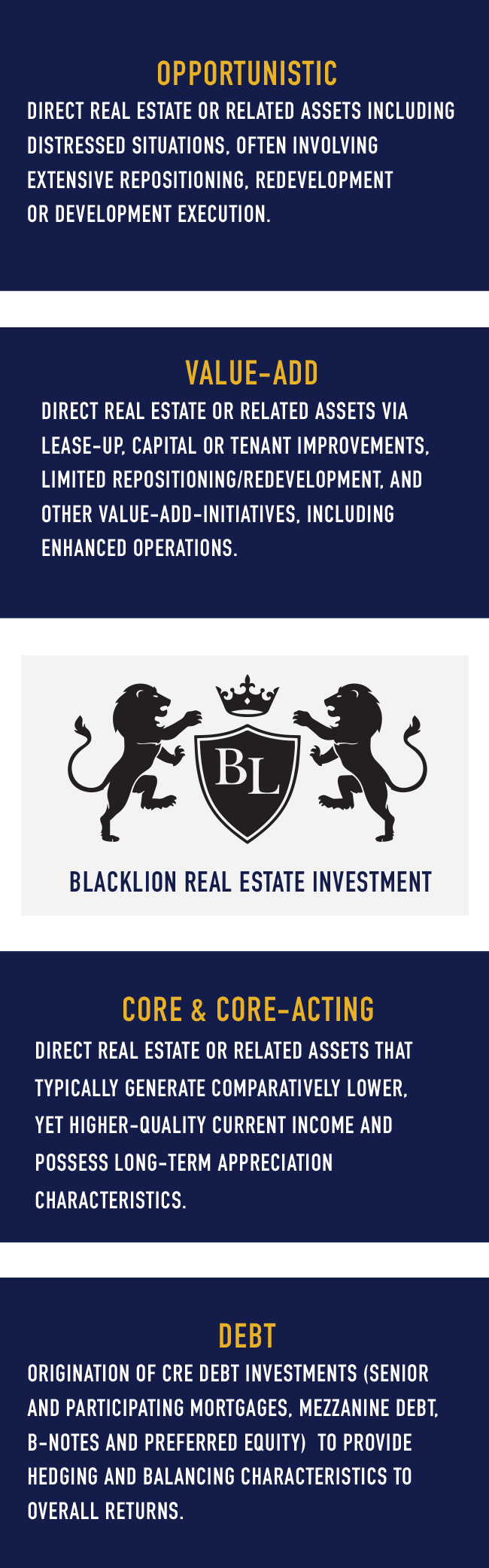Blacklion utilizes a comprehensive, proprietary, and collaborative top-down research approach to develop portfolio strategy and to identify target markets, including bottom-up research that integrates local market analysis into each investment decision.